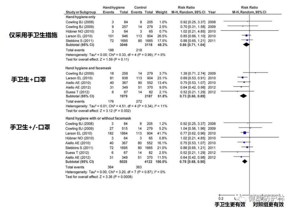 图2 手卫生措施及佩戴口罩对流感的预防作用
